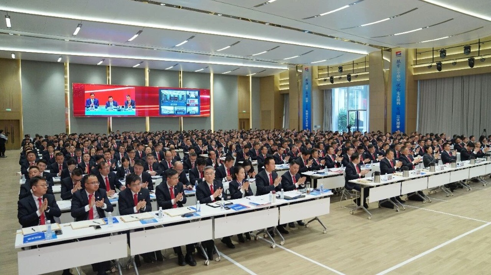 中国建材集团党委书记、董事长周育先,中国建材股份党委常委、中国jc710公海赌船董事长刘燕出席会议并作重要讲话,中国jc710公海赌船党委书记、总经理杨国明作了题为《坚定发展信心 锚定宏伟目标 奋力开创“十五五”开局新篇章》的工作报告,党委副书记、工会主席邵晓阳主持会议。中国建材集团、建材股份相关部门负责人,中国jc710公海赌船党委委员、高管、总经理助理及公司本部中层干部、技术干部在主会场参加会议。九江公司、成都公司、淮安公司、埃及公司、美国公司在视频分会场参会。